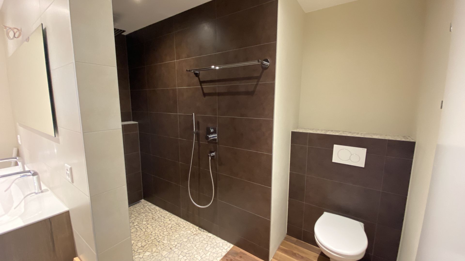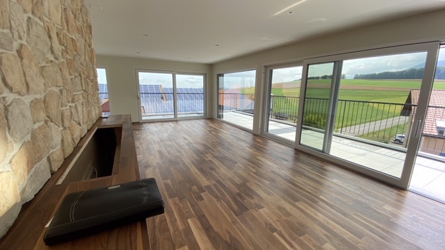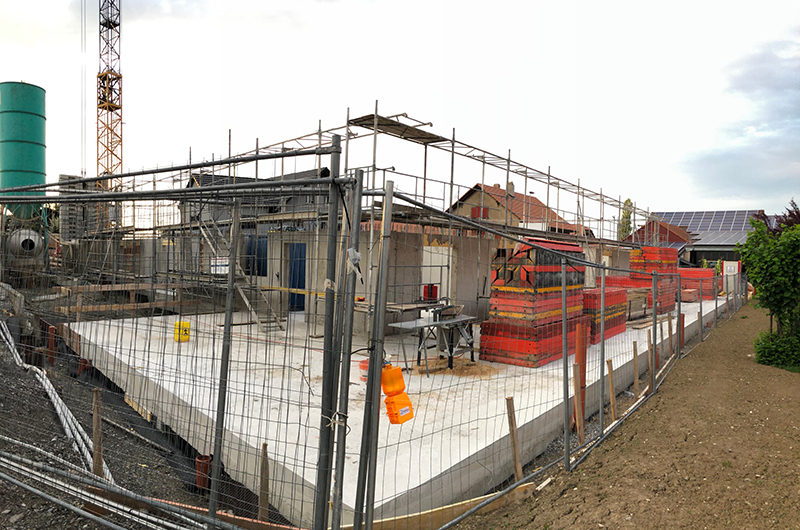 Construction en briques TC et isolation périphérique, chauffage pompe à chaleur et sondes géothermiques + panneaux photovoltaïques Le chantier a duré 16 mois.