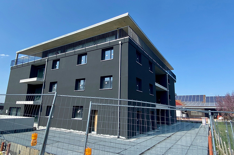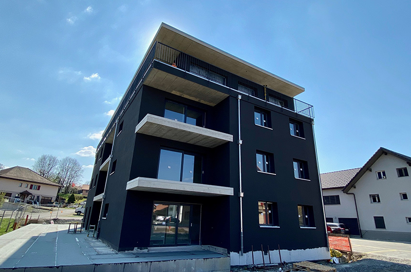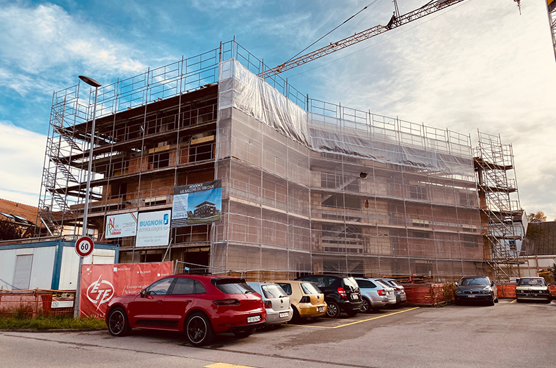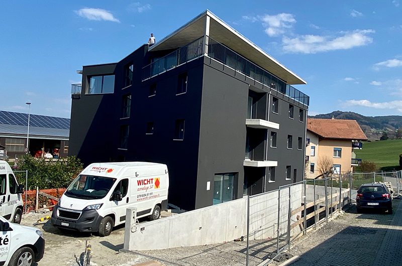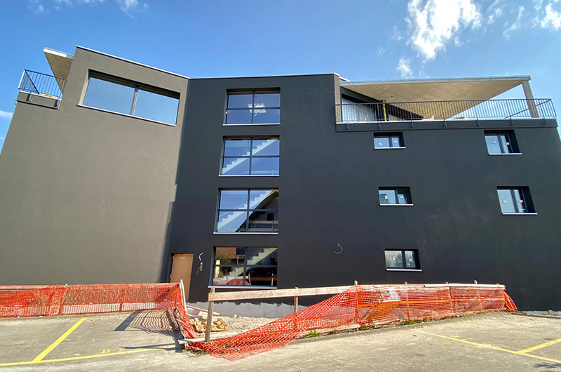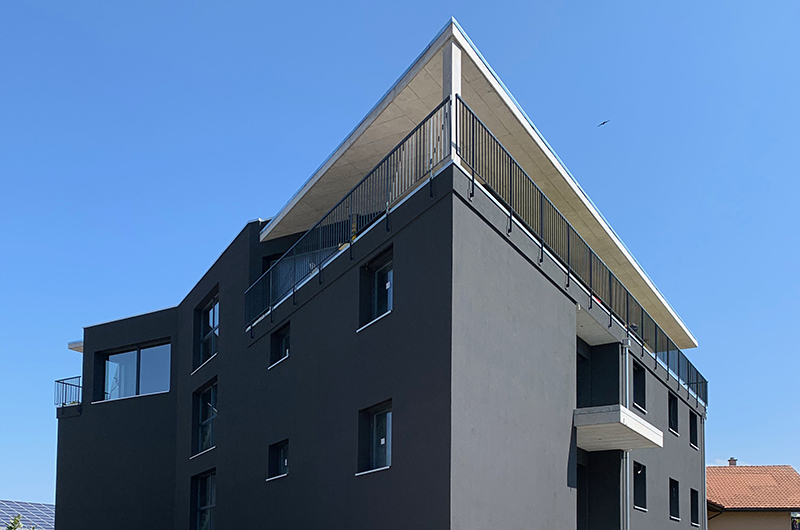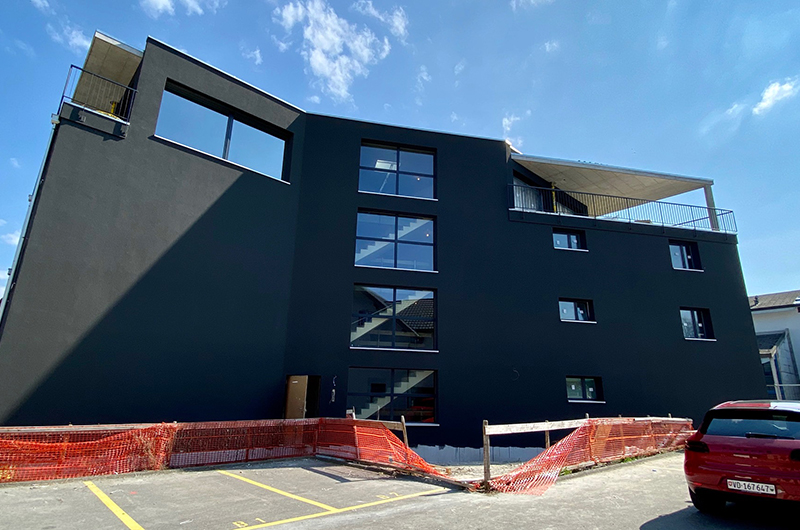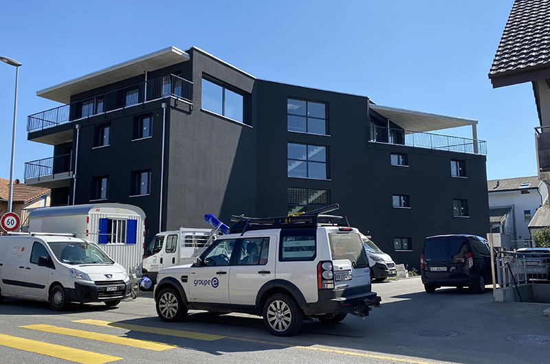 Intégration d’un immeuble de 12 appartements destinés à la vente en PPE. La problèmatique du projet a été de s’implanter dans un périmètre de construction ayant une forme non-géométrique.